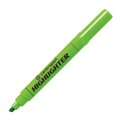 Zvýrazňovač je od značky CENTROPEN.  Zvýrazňovač má klinový hrot na písanie. Šírka stopy zvýrazňovača je 1 až 4,6 mm. Sada štyroch farieb, akými sú žltá, oranžová, ružová a zelená. Je vhodný na všetky druhy papierov, vrátane faxovacieho a kopírovacieho papiera.