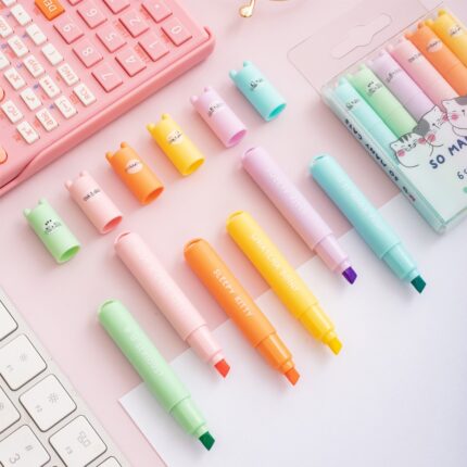 Mini zvýrazňovače pre deti s motívmi zvieratok - sada 6 ks v balení na blistri. neónové farby: fialová, modrá, ružová, zelená, oranžová, žltá