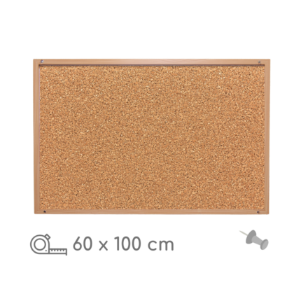 Korková tabuľa s dreveným rámom vhodná na pripínanie dokumentov, odkazov alebo obrázkov.